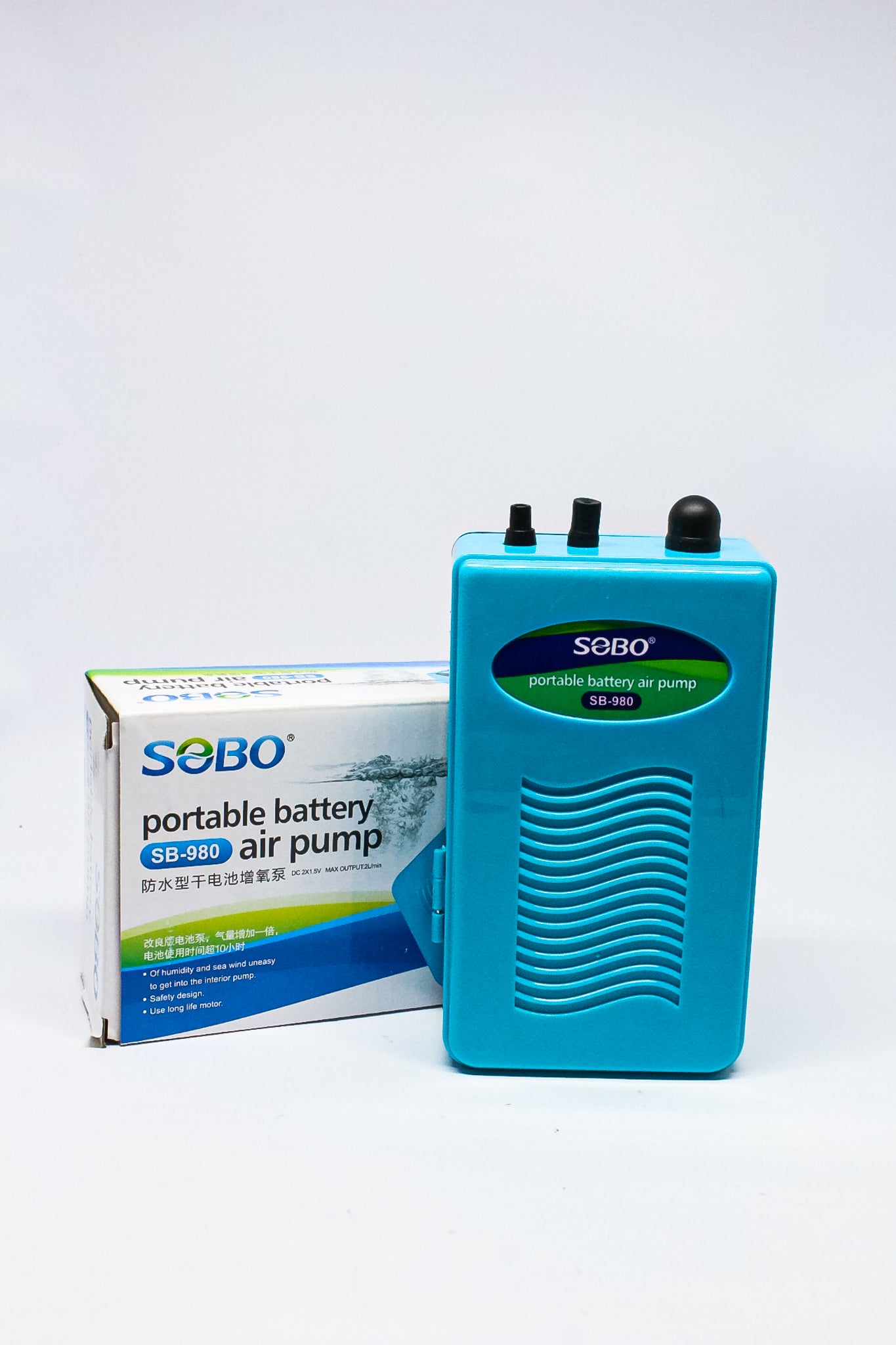 Bomba de aire portátil alimentada por baterías, ideal para situaciones de emergencia, transporte de peces o acuarios sin acceso directo a electricidad. Su diseño ligero y compacto la hace fácil de transportar y usar en cualquier lugar.